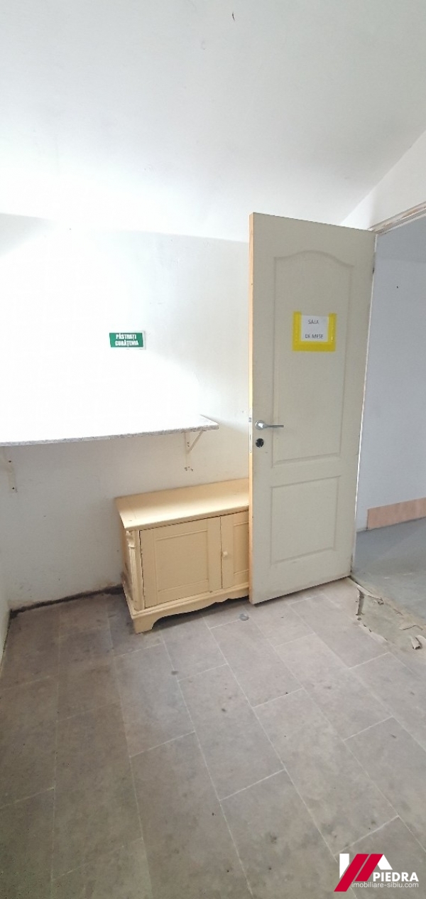 Agenția Imobiliară Piedra va propune spre închiriere o hală în zona Piața Cibin.Hala are o suprafață de aproximativ 150 mp și este formată din 2 încăperi mari , birou și 2 grupuri sanitare.In folosință exclusivă mai are în spate în teren de aproximativ 250 mp.Hala beneficiază de curent trifazic, apă și canalizare,aceea auto cu camion de mic tonaj și 3 locuri de parcare in curtea interioara.Pret 850 Euro+ TVA.