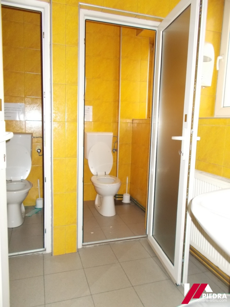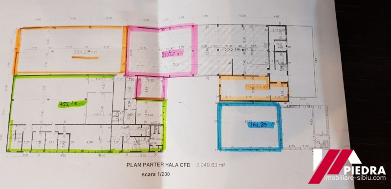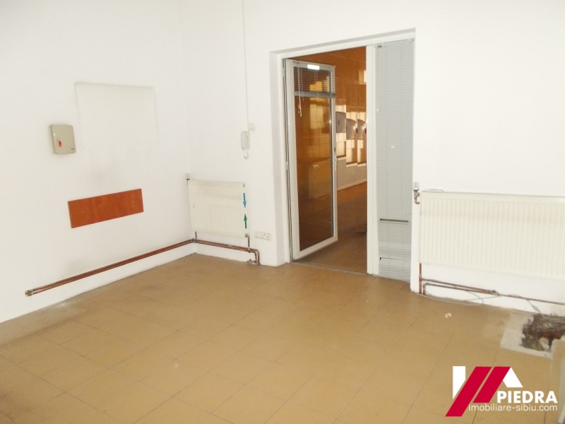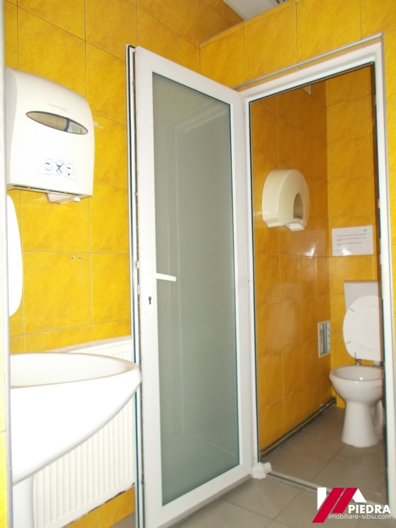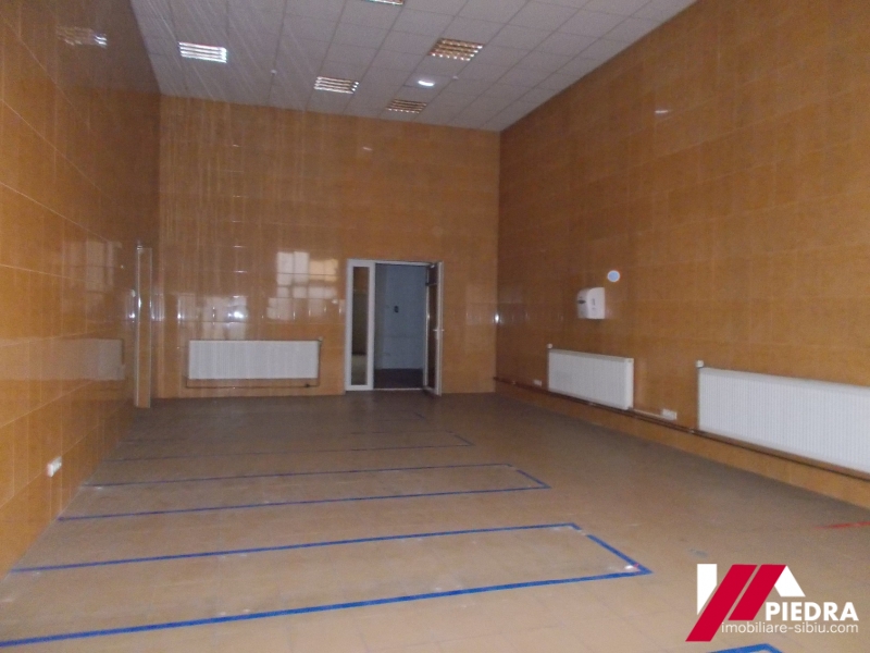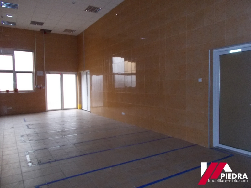 Inchiriez hala situata la parter in zona Piata Cibin , cu o suprafata de 165,25mp ( este marcata pe schita cu portocaliu) .Hala este situata la parter si este formata dintr-o incapere open space , birou si acces la grupul sanitar .Hala este prevazuta cu gresie pe jos , faianta , curent trifazic , incalzire centrala,climatizare ,tavan casetat . Hala se afla in zona industriala , are acces cu tirul in curtea interioara , exista supraveghere video in curte , paza 24/24 , locuri de parcare si utilitati separate .Pret 6E ( 992 Euro )Este ideala pentru service auto , atelier , productie ,depozit etc . La cerere spatiul mai poate fi suplimentat cu suprafete de la 100,200m,300,400,500m etc. pana la 2000mp.