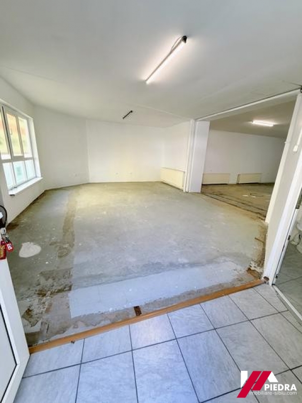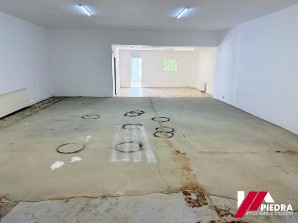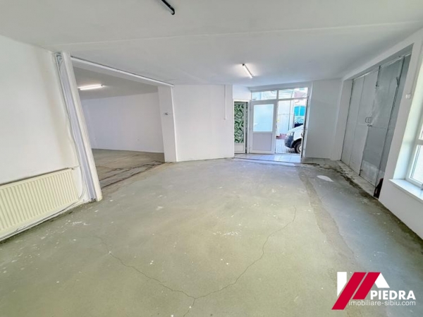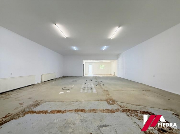 Inchiriez spațiu ideal pentru showroom, magazin, birouri, reprezentanță, depozitare sau productie,cu o suprafata de 195mp ,situat la parterul unei cladiri ,in zona centrala a Sibiului, cu vizibilitate buna și trafic intens, spatiu ideal pentru afaceri care necesită expunere și acces facil. Spatiul beneficiaza de o vitrină stradală generoasa de 8m si este compus din: hala cu inaltime variabilă: 3 – 5 m,grup sanitar propriu, 3 birouri . De asemenea exista si 2 locuri de parcare în curte si acces cu tirul . Dotări și utilități: Curent trifazic ,sistem de incalzire cu calorifere din otel,pardoseala cu gresie, geam termopan, eer conditionat,sistem de supraveghere video,certificat energetic și aviz ISU (negatie incendiu). Pret 973Euro+ TVA La cerere, spatiul poate fi suplimentat cu o suprafata de 286mp( se afla in continuarea spatiului de 195mp ) sau cu inca 245mp ,care se afla pozitionat in aceeasi curte.