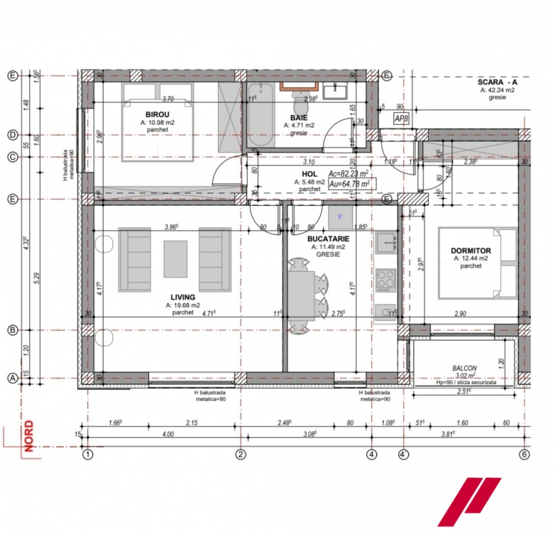Apartamentele au o suprafata utila de 65.75mp + un balcon de 3m.